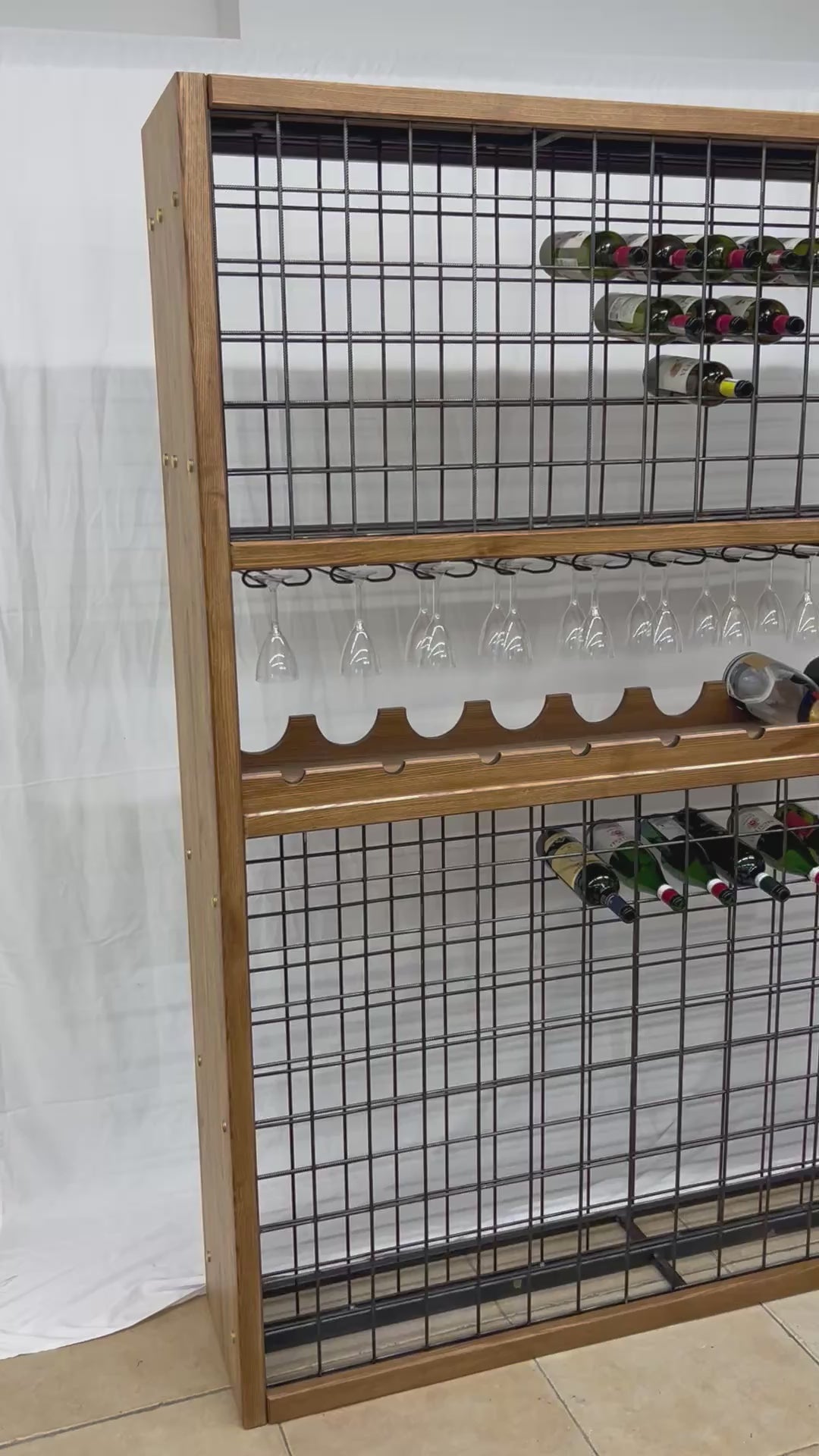 Il prodotto include un pratico ripiano porta calici, perfetto per servire il vino durante le occasioni speciali, e piedini in gomma per proteggere il pavimento da eventuali danni. La cantinetta può essere fissata a muro, assicurando stabilità e sicurezza.