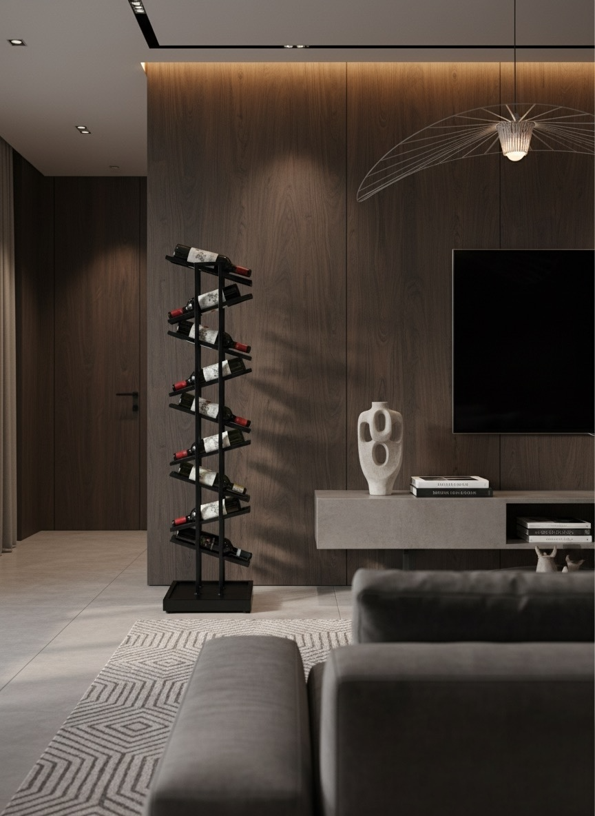 La Cantinetta Incline Tower non è solo un complemento d’arredo, ma una scultura funzionale capace di valorizzare le bottiglie e dare carattere all’ambiente con la sua presenza elegante e contemporanea.