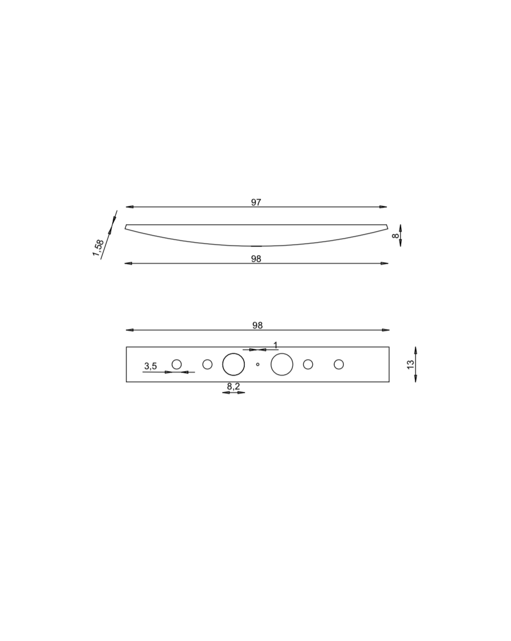 - Altezza massima: 8 cm (diminuisce fino a circa 1,5 cm alle estremità)