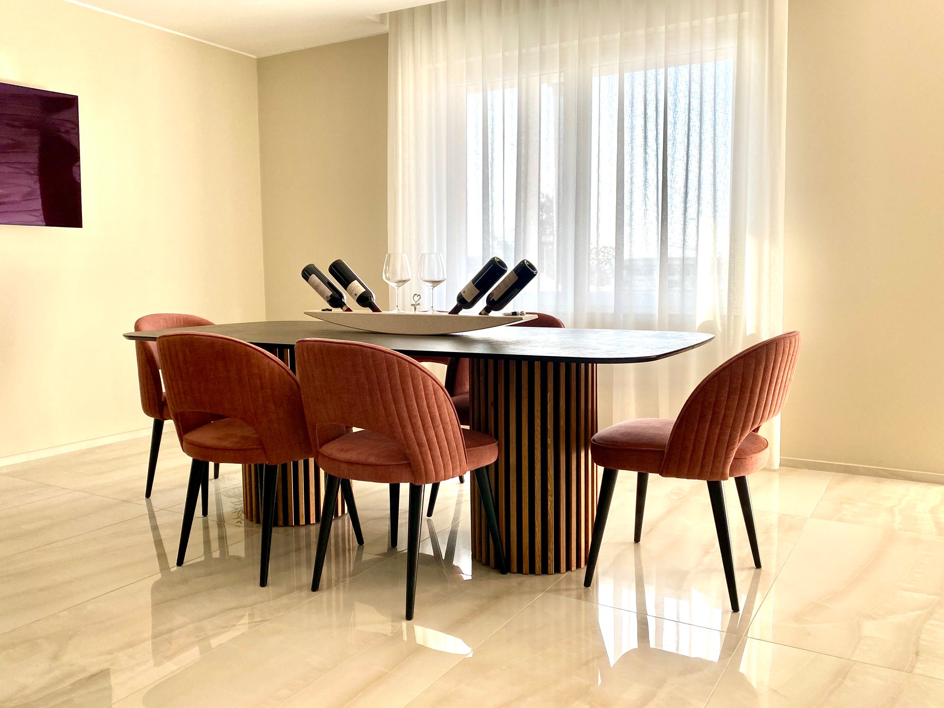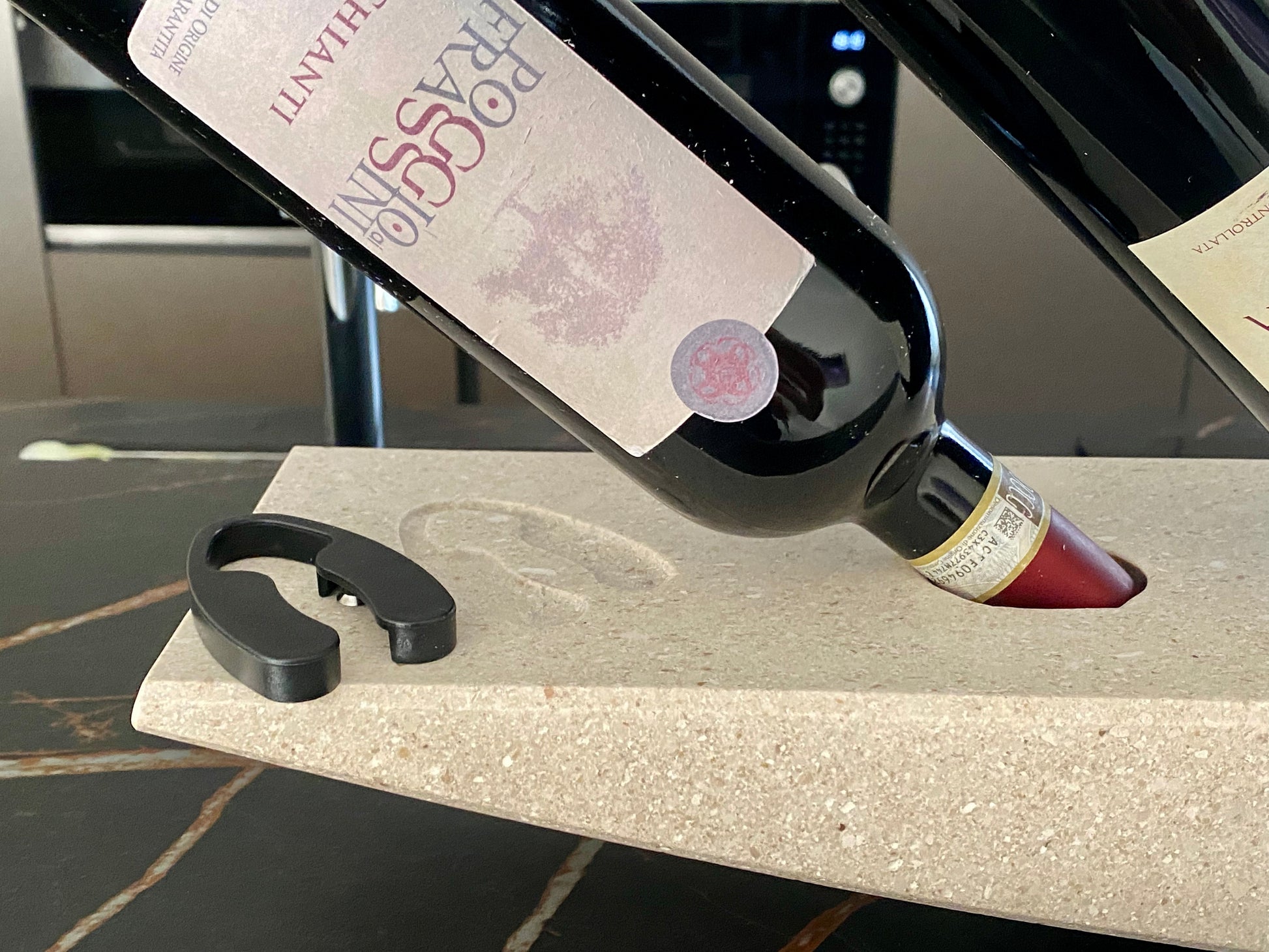 Questo portabottiglie non è solo un oggetto funzionale, ma anche un elemento di design che arricchisce ogni tavola. Dotato di quattro fori sfasati, offre un’ottima soluzione per contenere fino a quattro bottiglie di vino inclinate nella posizione perfetta, mantenendo il liquido in contatto con il tappo di sughero per preservarne la freschezza.