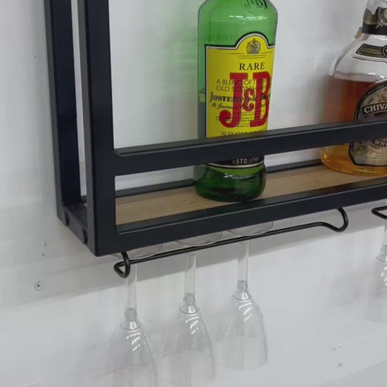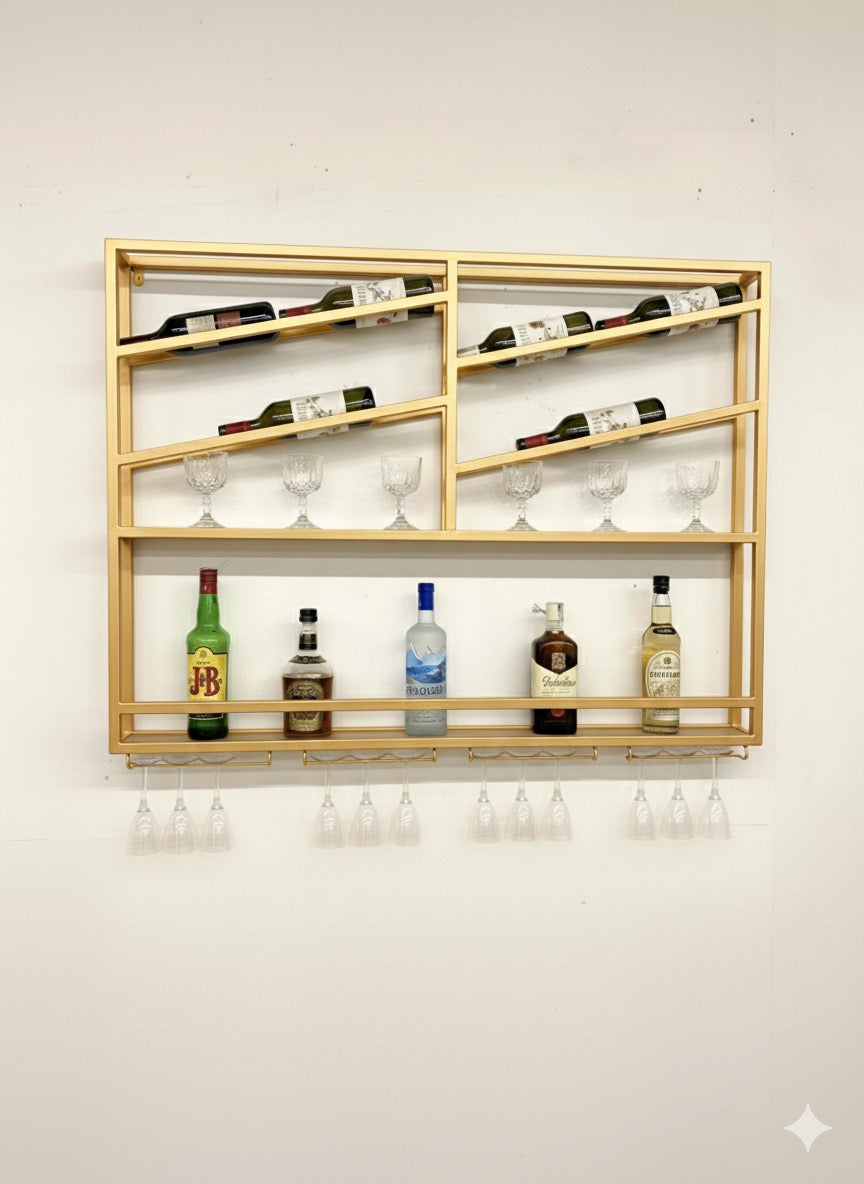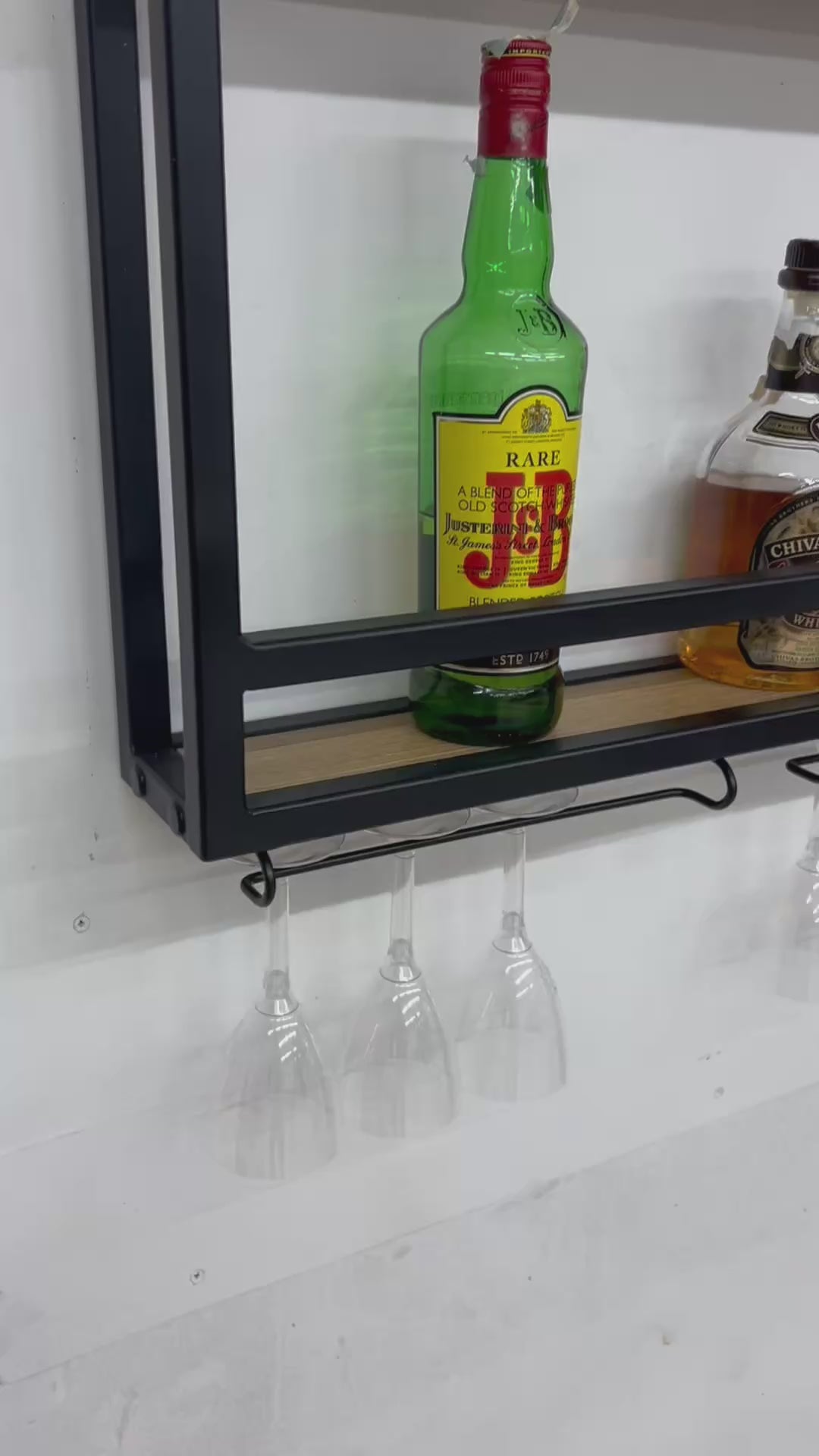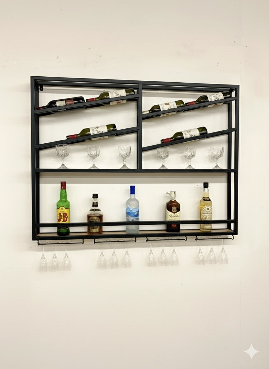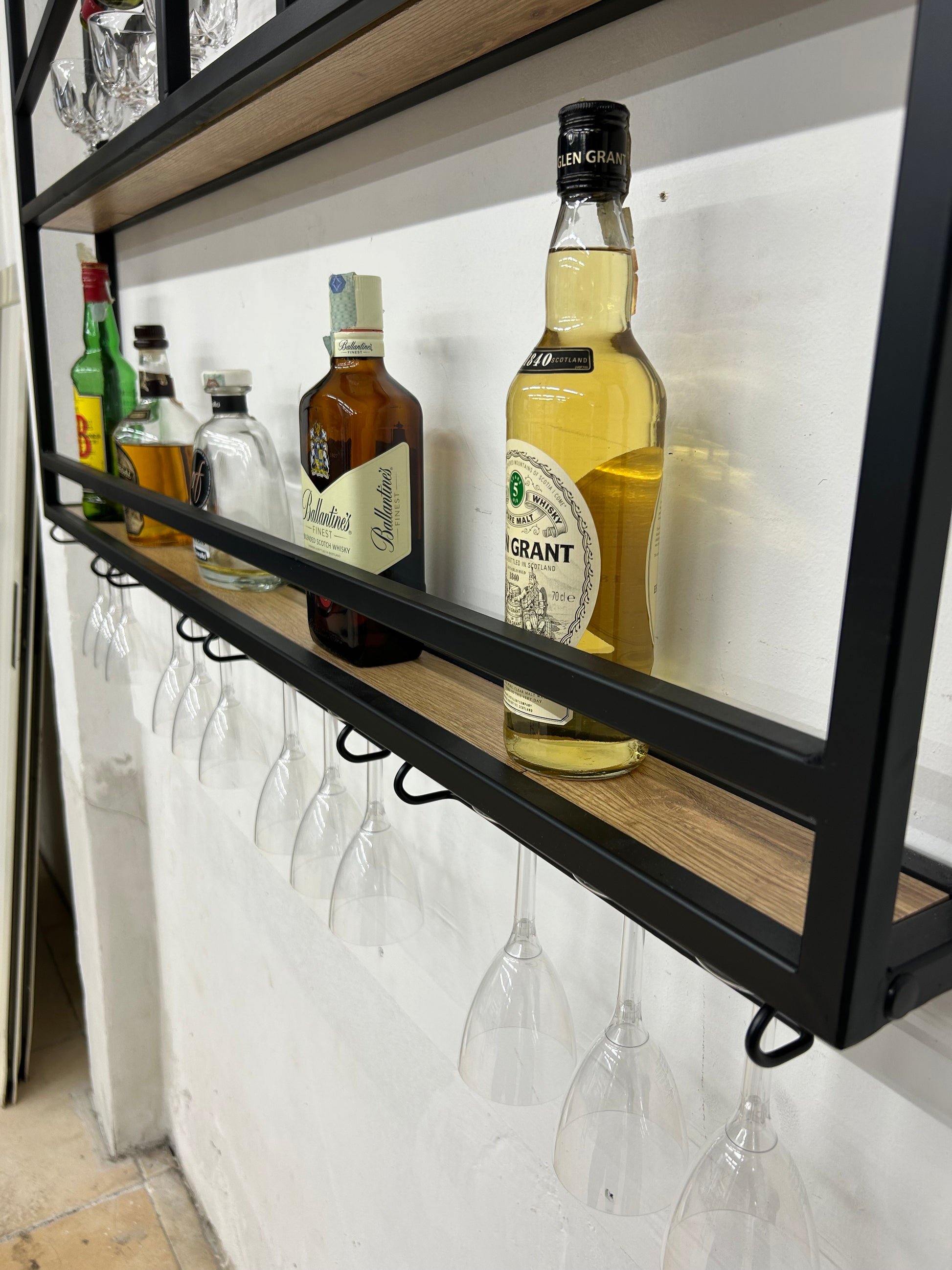 - Porta Calici Inclusi: Con 4 portacalici già predisposti sui fori della mensola inferiore, potrai esporre i tuoi calici in modo elegante e pratico.